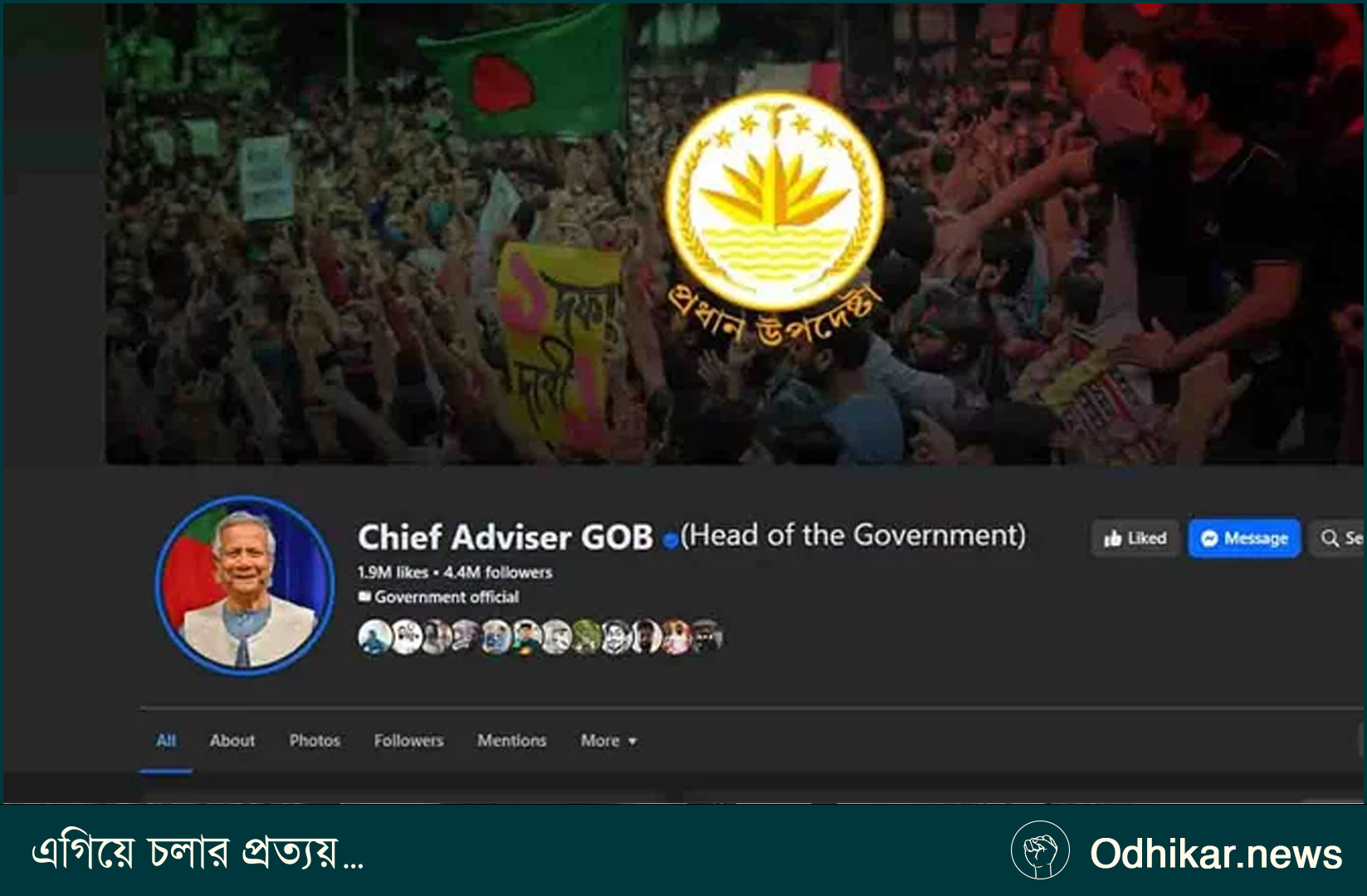 পোস্টে উল্লেখ করা হয়, ‘Chief Adviser GOB (Head of the Government)’ নামে পরিচালিত এই অফিসিয়াল পেজটি এখন থেকে আর হালনাগাদ করা হবে না। ২০২৪ সালের ১৪ আগস্ট অন্তর্বর্তী সরকার গঠনের পর জনসম্পৃক্ততা ও তথ্য আদান–প্রদানের গুরুত্বপূর্ণ মাধ্যম হিসেবে পেজটি চালু করা হয়েছিল। বর্তমানে পেজটির অনুসারী সংখ্যা ৪৪ লাখেরও বেশি।
