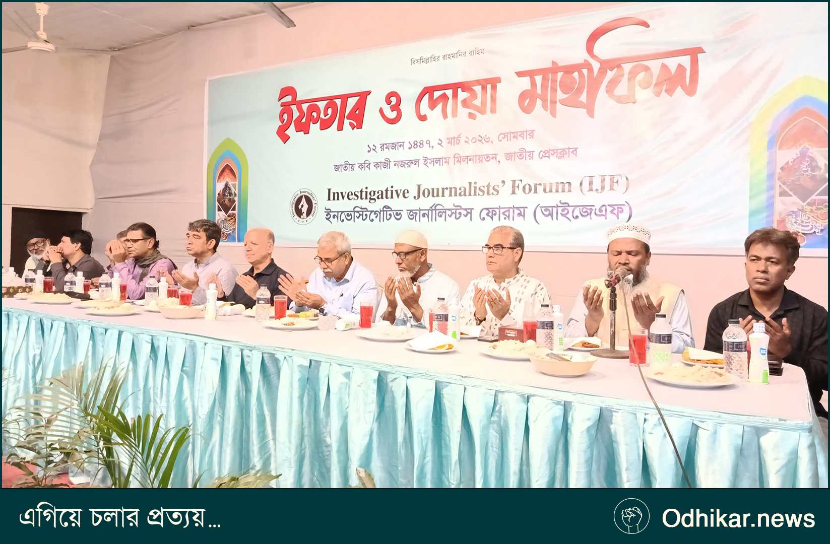বিত্র মাহে রমজান উপলক্ষে ইনভেস্টিগেটিভ জার্নালিস্টস ফোরাম-এর উদ্যোগে আজ সোমবার (২ মার্চ ২০২৬) রাজধানীর জাতীয় প্রেসক্লাব-এর কাজী নজরুল ইসলাম মিলনায়তনে ইফতার ও দোয়া মাহফিল অনুষ্ঠিত হয়।