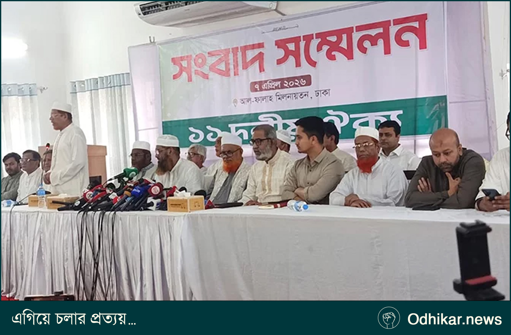 গণপরিষদের অধিবেশন আহ্বান এবং গণভোটের রায় বাস্তবায়নের দাবিতে দেশব্যাপী পাঁচদিনের কর্মসূচি ঘোষণা করেছে বাংলাদেশ জামায়াতে ইসলামীসহ ১১ দলীয় ঐক্য। মঙ্গলবার (৭ এপ্রিল) দুপুর সাড়ে ১২টায় রাজধানীর মগবাজারের আল-ফালাহ মিলনায়তনে আয়োজিত এক সংবাদ সম্মেলনে এ কর্মসূচি ঘোষণা করা হয়। সংবাদ সম্মেলনে বক্তব্য দেন বাংলাদেশ খেলাফত মজলিসের আমির মাওলানা মামুনুল হক। এ সময় জোটভুক্ত দলগুলোর শীর্ষ নেতারা উপস্থিত ছিলেন।
