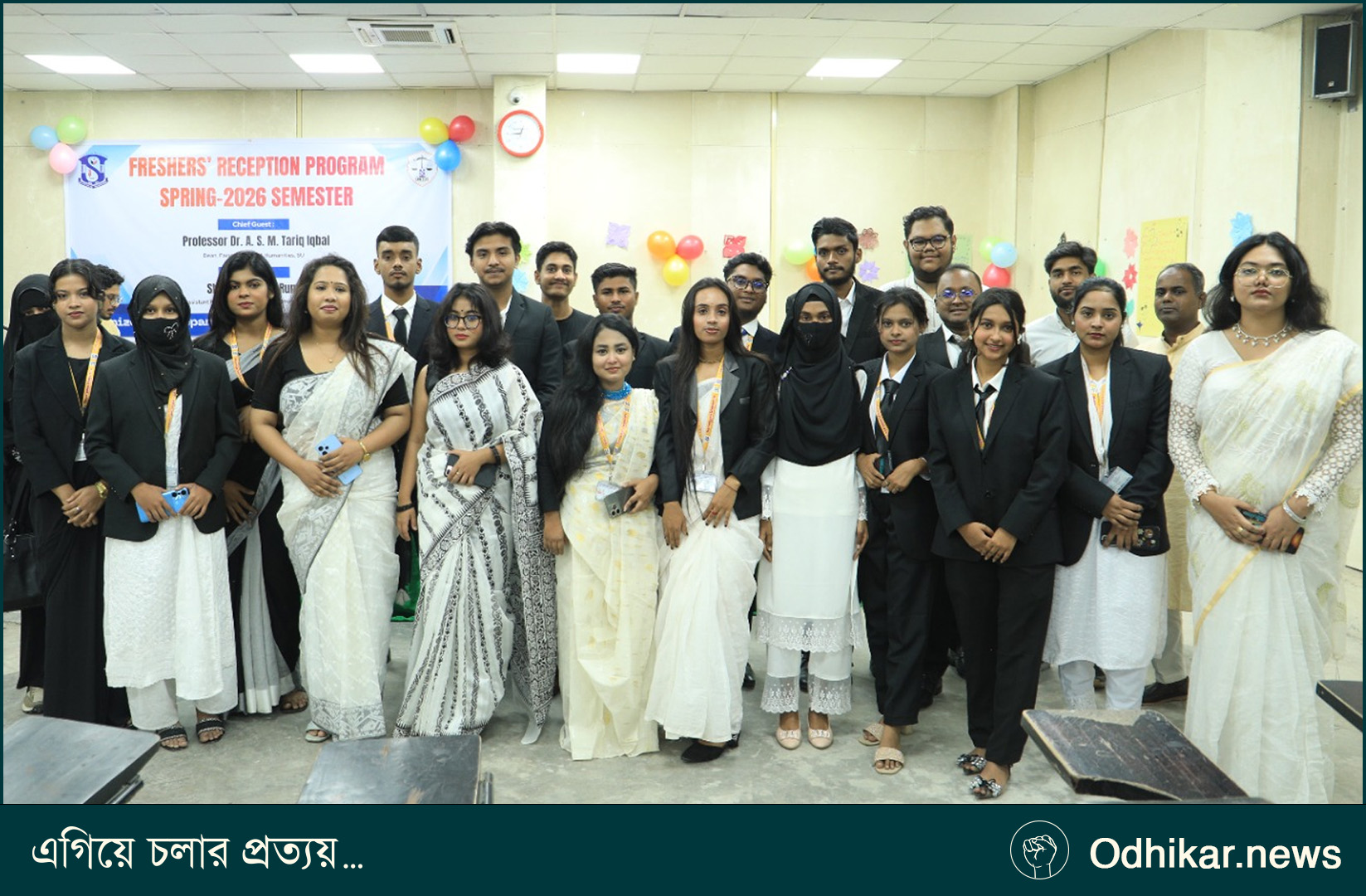 সোনারগাঁও ইউনিভার্সিটির আইন বিভাগের উদ্যোগে স্প্রিং-২০২৬ সেমিস্টারের নবীনবরণ অনুষ্ঠান সফলভাবে অনুষ্ঠিত হয় আজ রাজধানী ঢাকার গ্রীনরোড ক্যাম্পাসে। নবীন শিক্ষার্থীদের আনুষ্ঠানিকভাবে স্বাগত জানানোর মাধ্যমে অনুষ্ঠানের সূচনা হয়। পুরো আয়োজনটি ছিল প্রাণবন্ত, আনন্দঘন এবং উৎসবমুখর পরিবেশে পরিপূর্ণ।