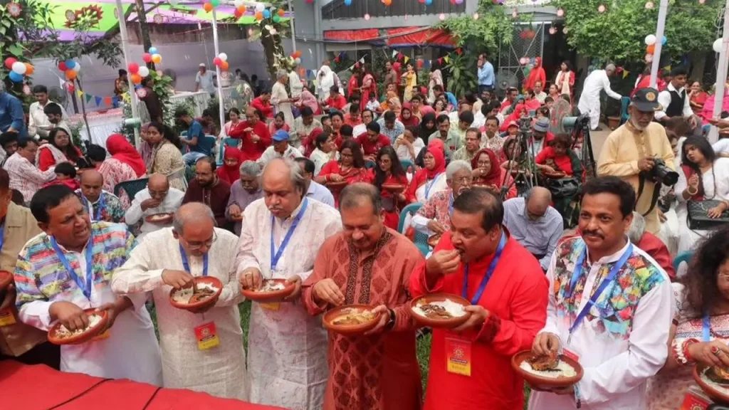 সকাল ৮টায় প্রেস ক্লাব সদস্য ও তাদের পরিবারের জন্য খই, মুড়ি-মুড়কি, পায়েস, বাতাসা, খিচুড়ি ও পান্তা-ইলিশের আয়োজন করা হয়। পরে মধ্যাহ্নভোজেও দেশীয় খাবারে অংশ নেন সদস্যরা।
